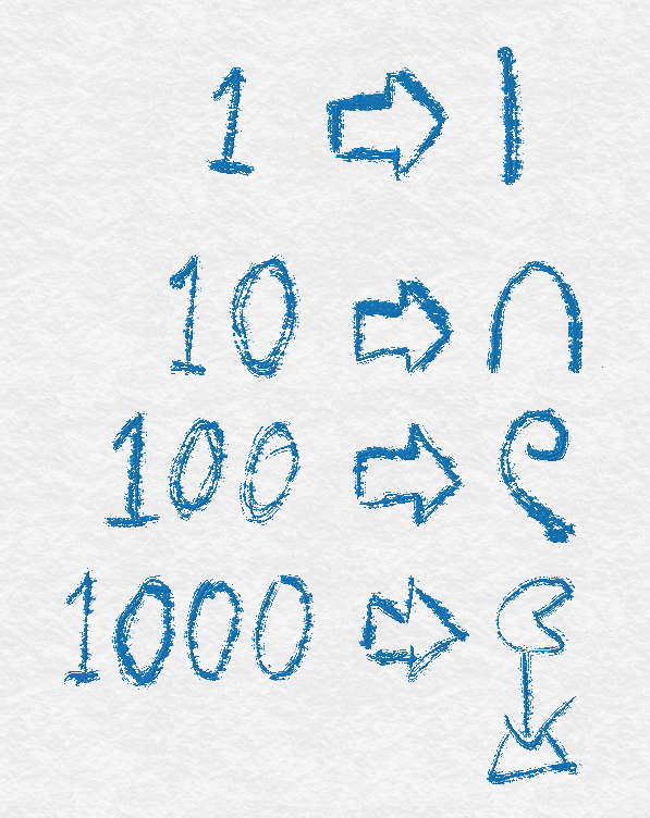 Obviously, this would make mathematics particularly tedious, incredibly difficult to read, and extremely prone to simple counting mistakes. So, the Egyptians developed an ingenious method for simplifying multiplication based upon a process of Doubling. While it is a painstaking process to count up numerous groups of large Egyptian numbers, it is a fairly trivial task to double any particular Egyptian number– just add the number to itself using regular addition methods. The ancient mathematicians of Egypt discovered that they could use a method involving repeated doubling to solve these difficult multiplication problems. Let’s take a look at how they would have tackled the problem of .